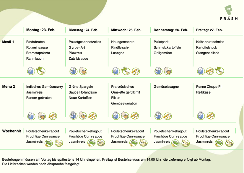 Shop Shop Entfernen Filter Filter Entfernen Filter Montags Menü Fleisch: Rindsbraten mit Rotweinsauce dazu Bramata Polenta und RahmlauchVegi: Indisches Gemüsecurry mit Jasminreis und Paneer gebratenWH: Pouletschenkelragout an fruchtiger Currysauce dazu Jasminreis CHF 15.00 Dienstags Menü ab CHF 15.00 Mittwoch Menü Fleisch: Hausgemachte Lasagne mit Rindfleisch Vegi: Französisches Omelette gefüllt mit Pilzen dazu Gemüse VariationWH: Pouletschenkelragout an fruchtiger Currysauce mit Jasminreis ab CHF 14.00 Donnerstag Menü Fleisch: Pullet Pork mit Schmezlkartoffeln und GrillgemüseVegi: Hausgemachte Gemüse LasagneWH: Pouletschenkelragout an fruchtiger Currysauce mit Jasminreis ab CHF 14.00 Freitag Menü Fleisch: Kalbsbrustschnitte mit Karoffelstock und StangensellerieVegi: Penne Cinque Pi mit ReibkäseWH: Pouletschenkelragout an fruchtiger Currysauce mit Jasminreis ab CHF 15.00 Keine Ergebnisse gefunden Es wurden keine Ergebnisse gefunden, die deiner Suche entsprechen. Entferne einige Filter.